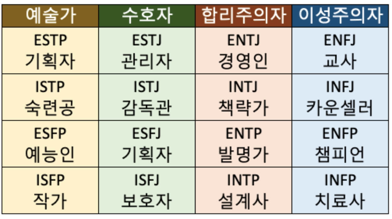 MBTI 유형별 진로 및 직업추천 (0) | 2021.01.16 |