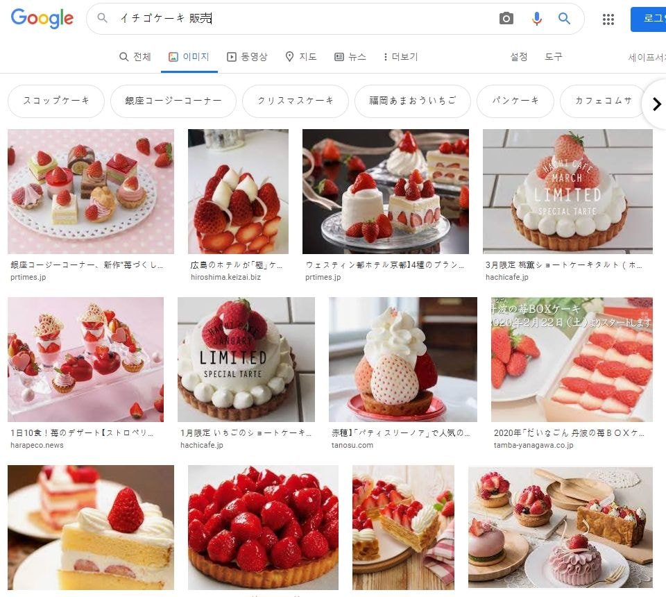 +딸기 케이크 판매(용) 라고 쳤을때 나오는 보통 일본의 케이크들