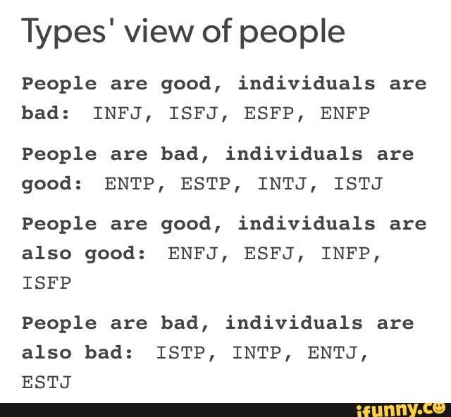 사람들은 나쁘고 개인도 나빠 : ISTP INTP ENTJ ESTJ