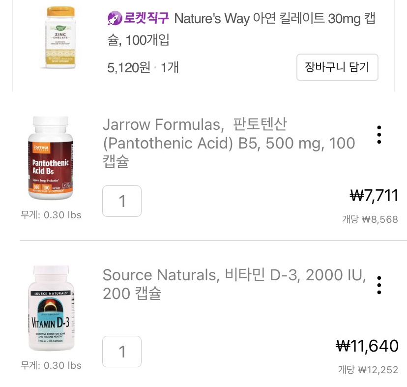 아연은 쿠팡직구로 샀고 밑에 두개는 아이허브에서 산거