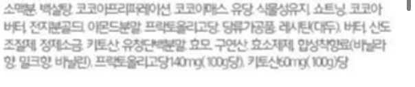 과자 2에는 코코아버터 코코아매스 농축버터가 먼저 보이므로 아래 과자2가 더 고급진 재료라고 할 수 있음