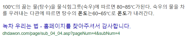 동북아 3국이 애용하는 녹차계열은 발효차계열인 홍차와 달리 온도가 낮음.