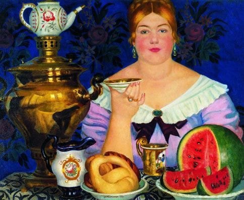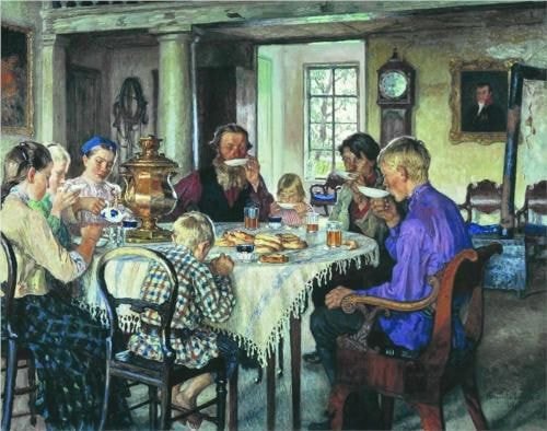 테이블에 웬 커다란 금속항아리가 있고 접시에 뭔가를 부어서 마시고 있는 걸 보면 십중팔구는 러시아인이라고 보면 됨.