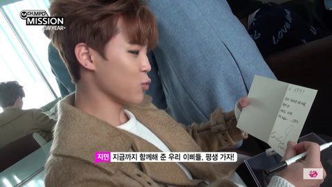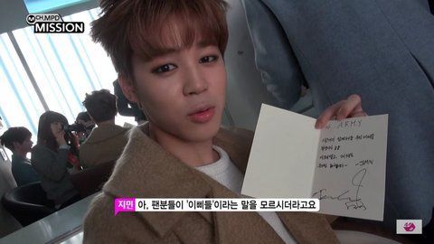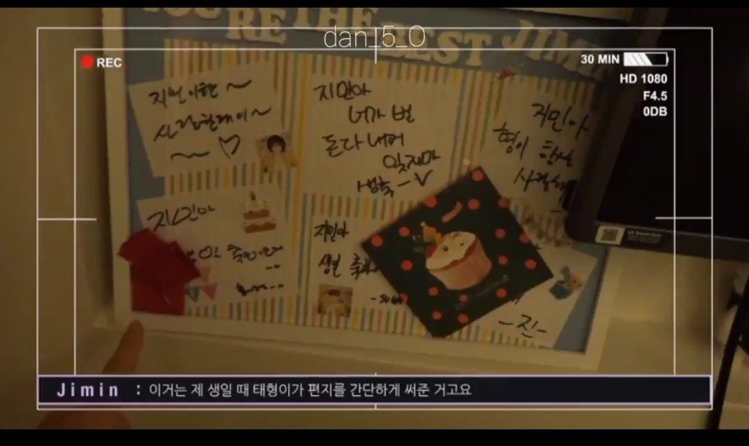 064. 지민의 선물 1호는 팬이 만들어준 멤버들의 편지를 담은 액자라고.