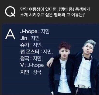 048. 지민의 친동생 나이는 멤버 정국의 나이와 같다.