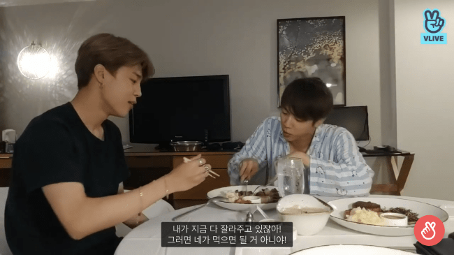 석진 : 넌 손이 없냐 발이 없냐? 내가 지금 다 잘라주고 있잖아! 그러면 네가 먹으면 될 거 아니야!