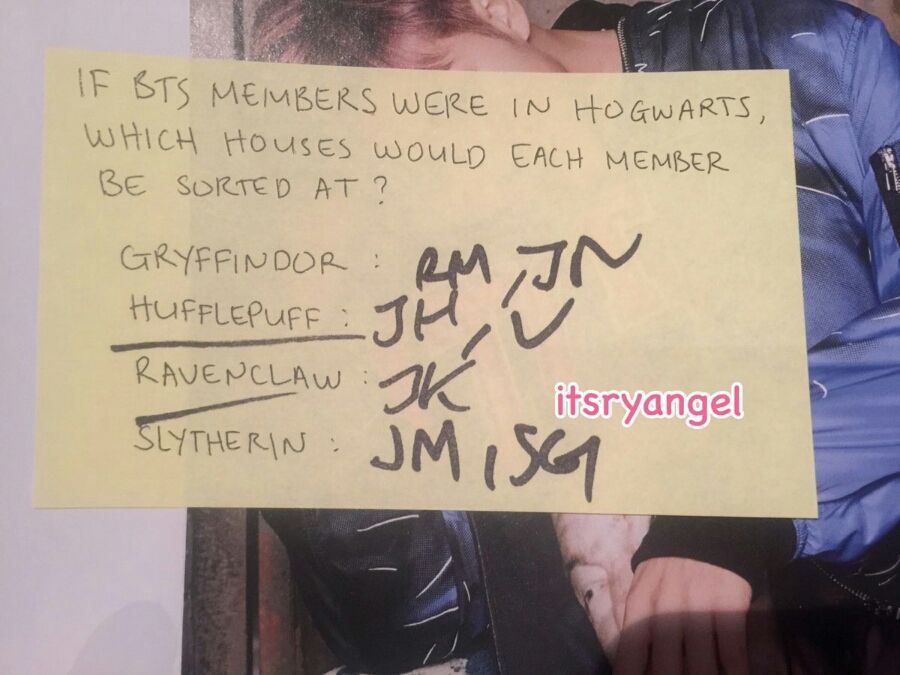 165. 지민에게 어울리는 해리포터 기숙사를 골라달라는 질문에 알엠은 슬리데린을 선택했으나, 진은 지민이 슬리데린에게 괴롭힐 당할 것 같다고 했다.