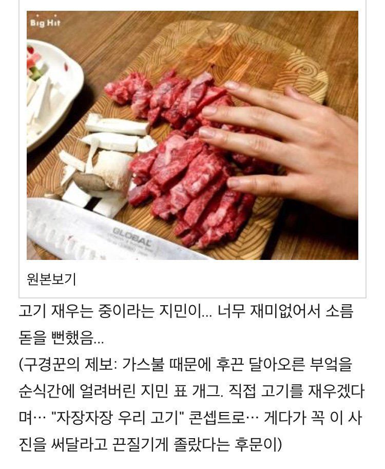 - 열을 식히려면 머리에 양배추를 올리라는 부산덬의 댓글을 보고 못알아들은 부산남자 지민은 궁금해서 직접 부산 야구장 양배추를 검색했다.