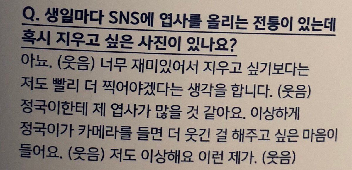 - 멤버들이 트윗에 올린 생일엽사가 너무 약하다고 하며 본인이 직접 엽사 만들어줌. 내년 멤버들 생일에 더 활개를 쳐도 될 것 같다며 다짐.