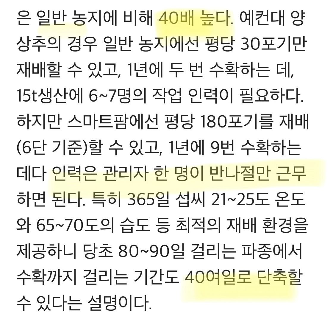 1년에 9번 재배 가능, 0.5명의 인력만 필요