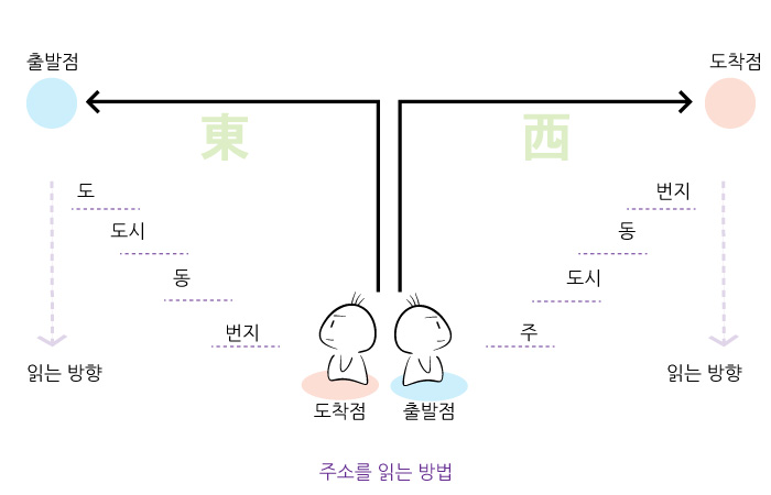 동양은 도착점에서 주소를 부르고, 서양은 출발점에서 주소를 부른다.