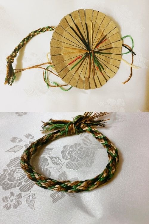 4가지 색상의 실이 2가닥씩 총 8가닥이 필요함 보통 길이는 7~80cm 정도로 하는듯