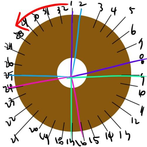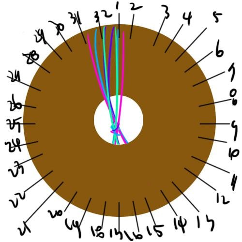 이 영상에선 디스크를 시계 방향으로 돌리기 때문에 실 끼우는 순서를 오른쪽부터 하는 거 같음