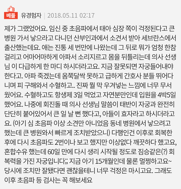 그리고 임산부분들께 공포를 드린것 같아서 죄송하네요 ㅠ. 안그래도 출산걱정 많으실텐데
