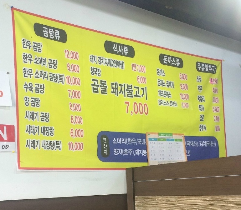 수제 왕돈까스, 한우곰탕 메뉴가 있는 곳.