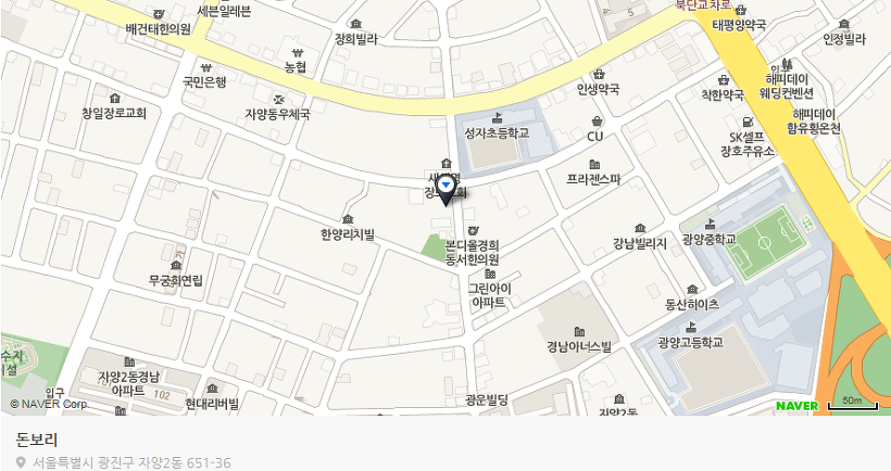 5호선 광나루역 2번 출구로 나와서 직진하다 보면 첫 번째 골목으로 1분 걷다보면 보이는 곳.
