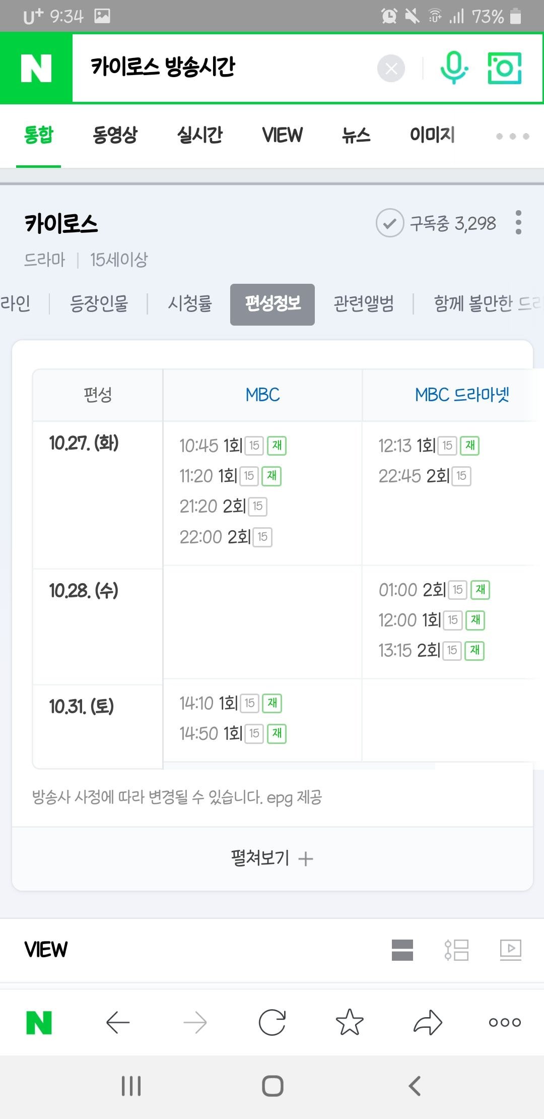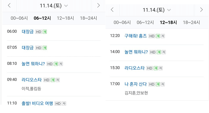 혹시나 해서 주말 편성표도 확인해봤다