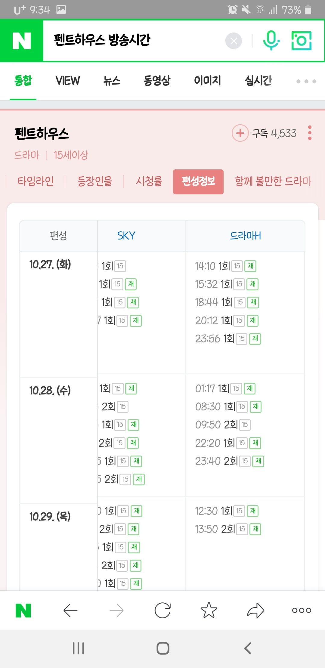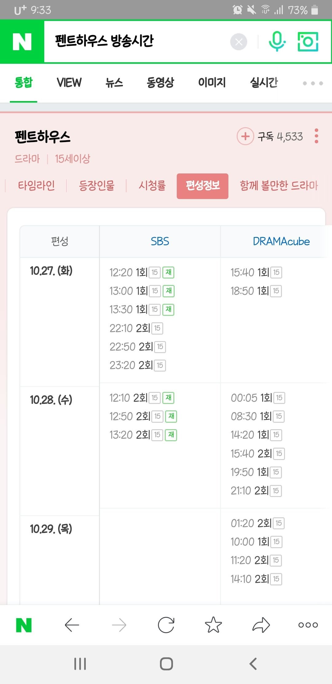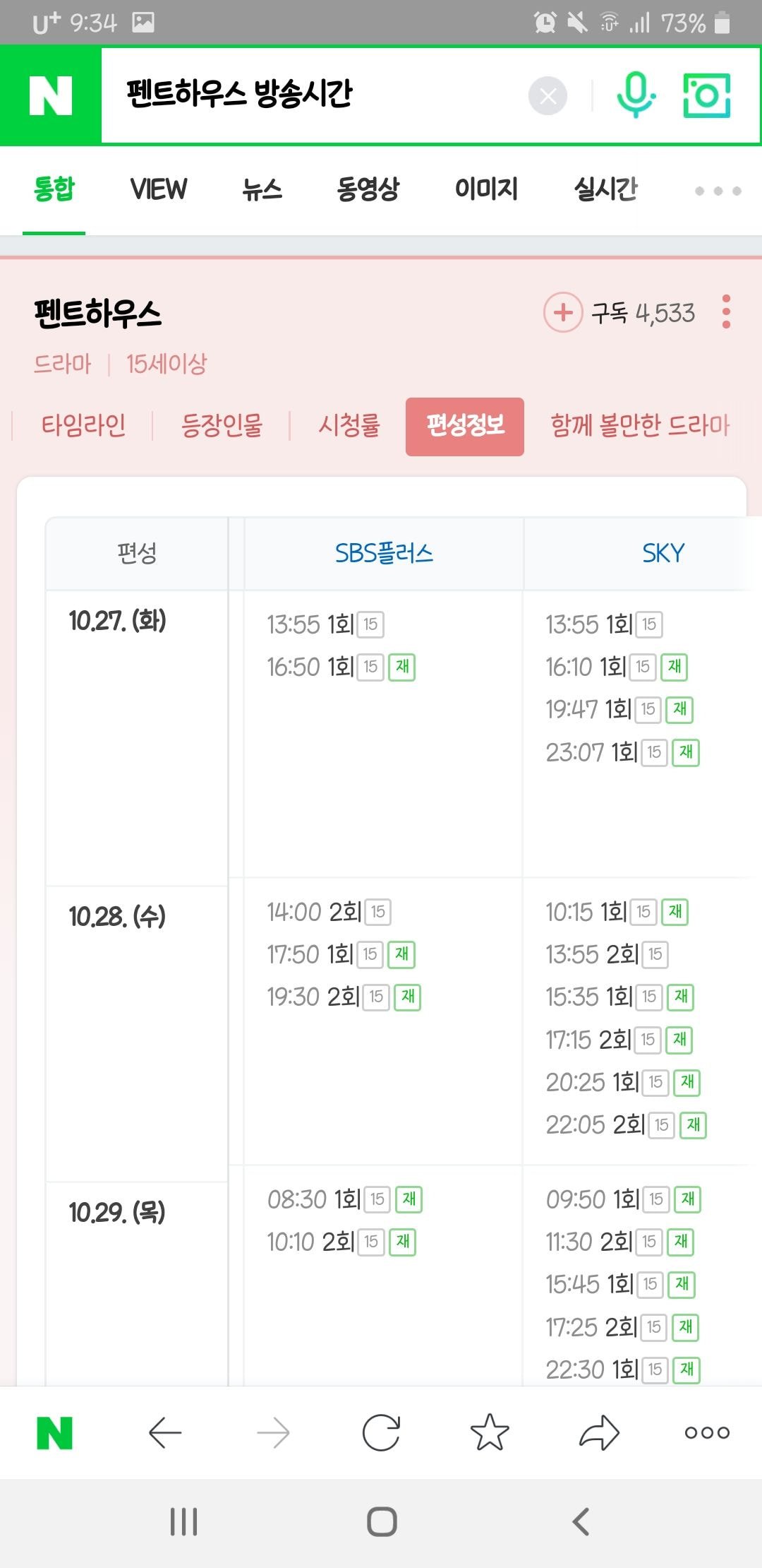 참고로 펜트하우스 재방편성이랑 카이로스 재방편성 비교하자면