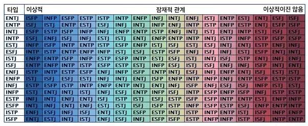 이상적인 궁합 <-> 이상적이지 않은 궁합