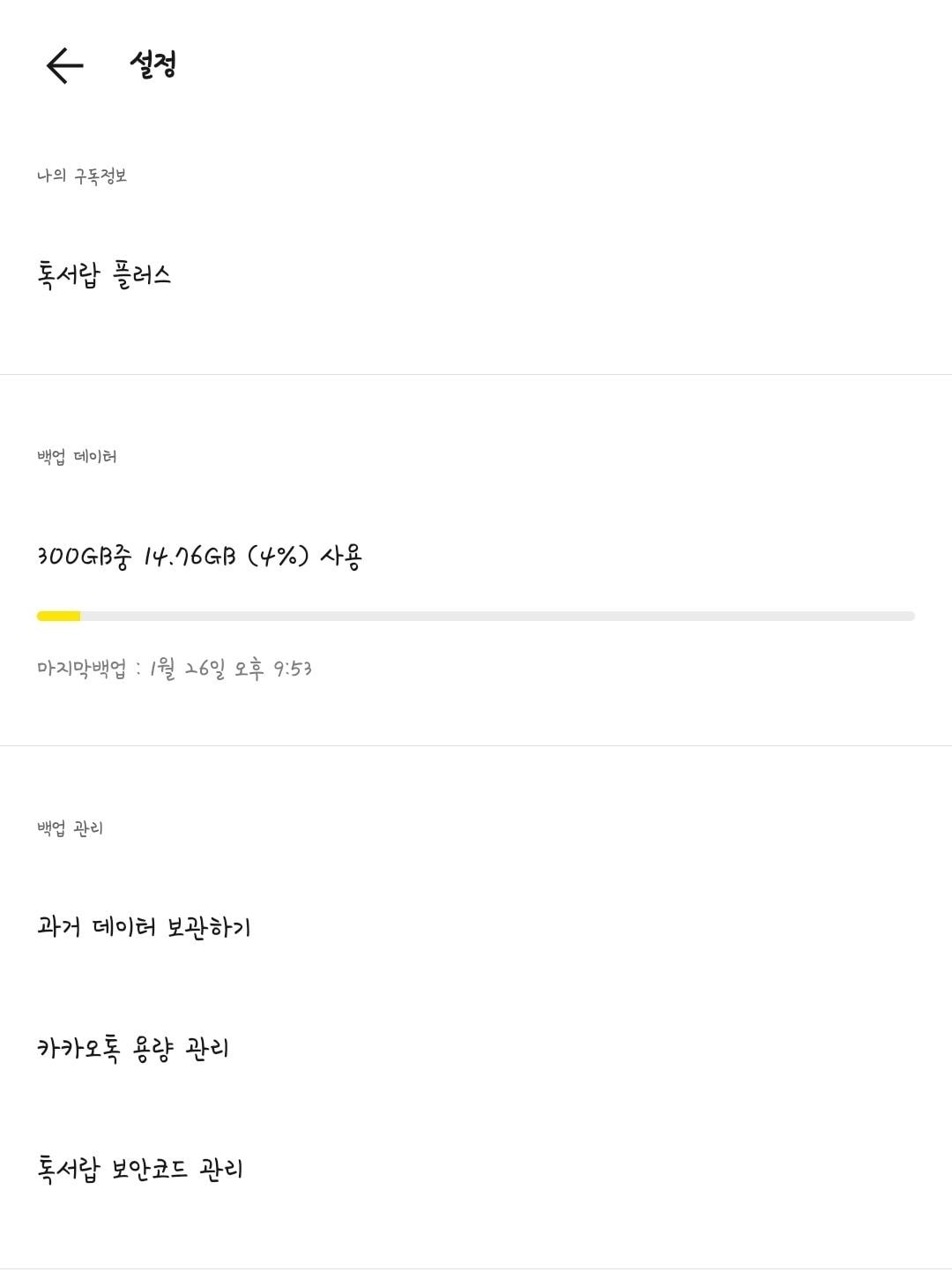 이렇게 새 폰에 백업하고 난 이후에는 톡서랍 해지를 해도 상관없고 계속 써도 상관없음(한달 990원)