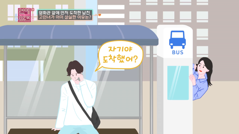 모른척 뒤에서 보고있는데 전화로 늦는다고 거짓말을 함