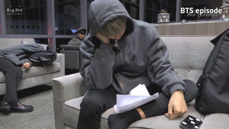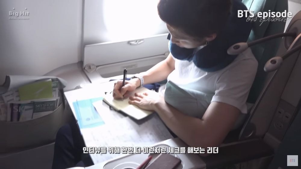 또 이동하는 비행기 안에서 빌보드와 해외 외신들에게 받을 인터뷰 질문 답변들을 영어로 준비하는 모습
