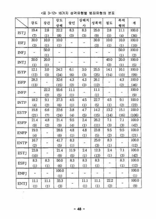 MBTI 유형별 범죄표 정리한 거
