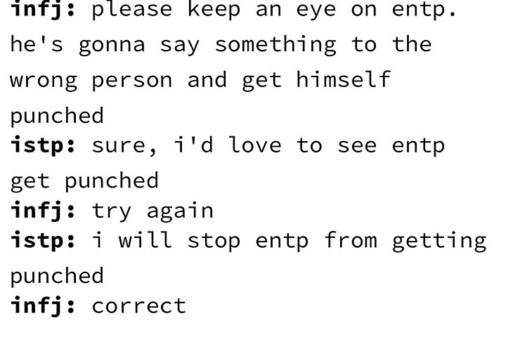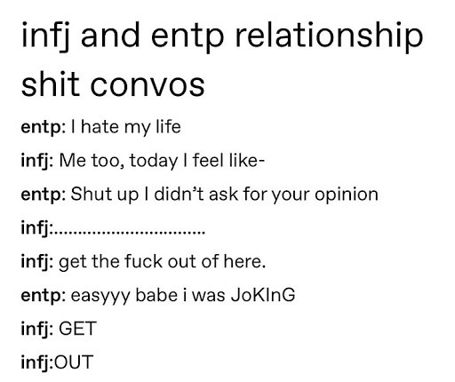 entp: 입 다물어 니 의견 물어본 적 없어.