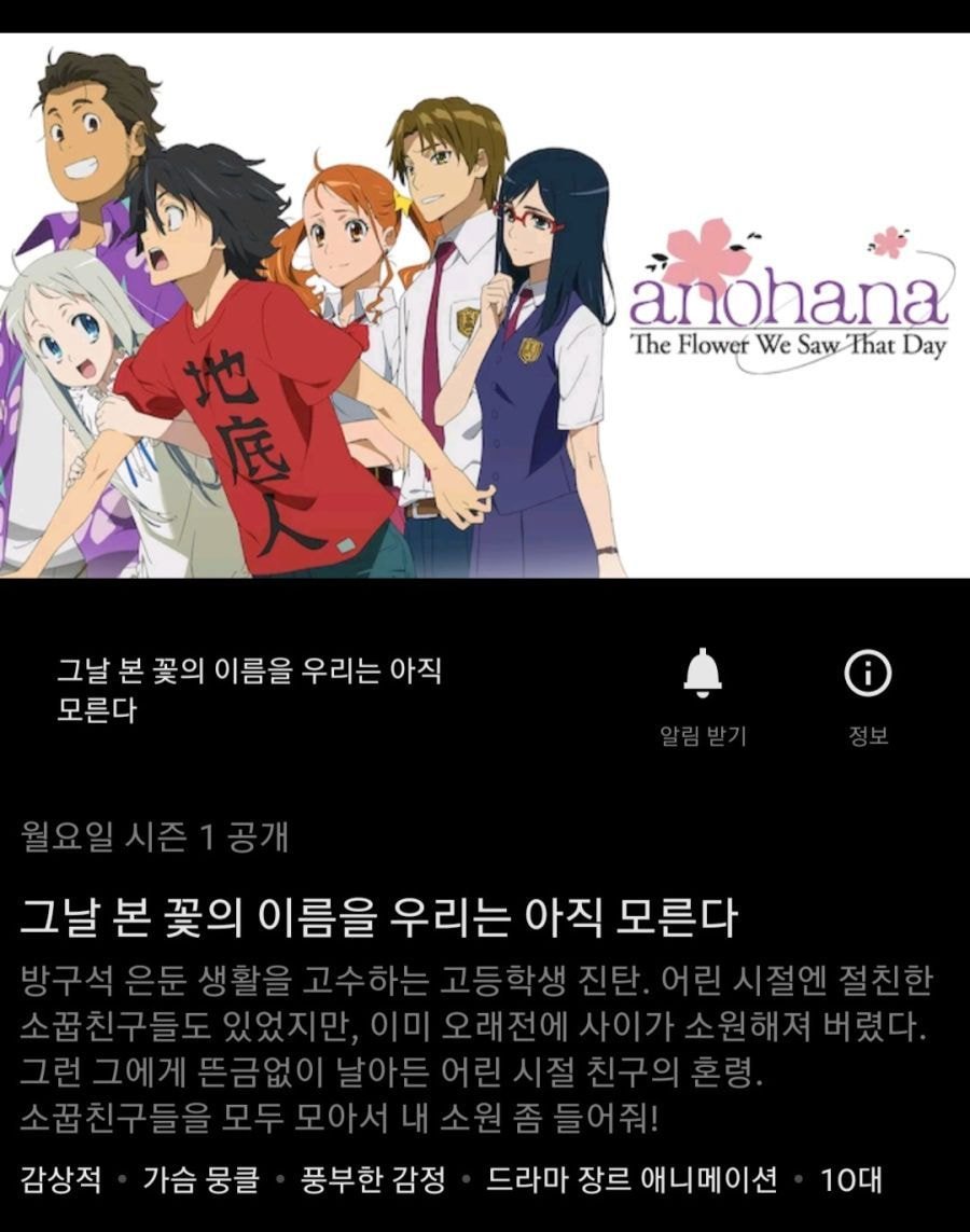 그날 본 꽃의 이름을 우리는 아직 모른다 (아노하나)
