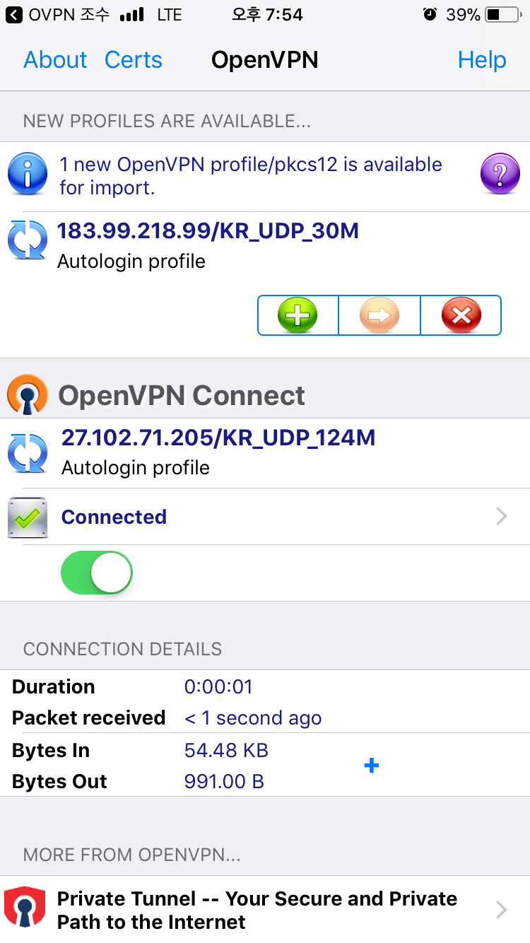 우선 ovpn 조수 앱과 open vpn 앱을 받아줘