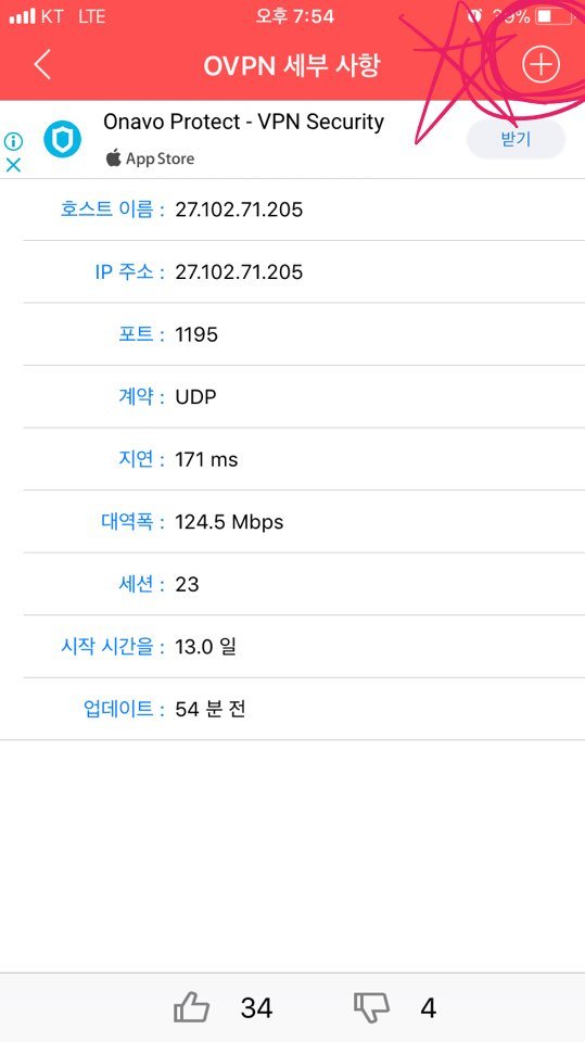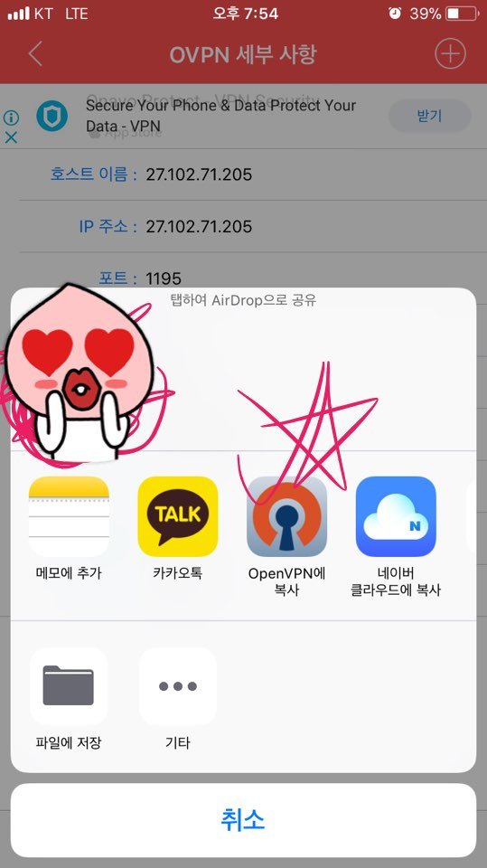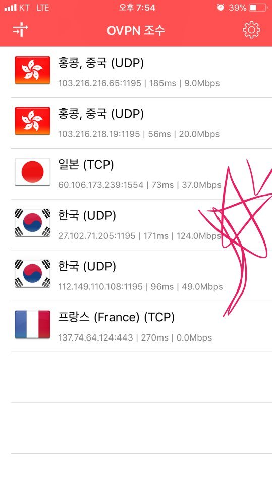 받았으면 우선 ovpn조수앱을 열고 한국을 선택해줘