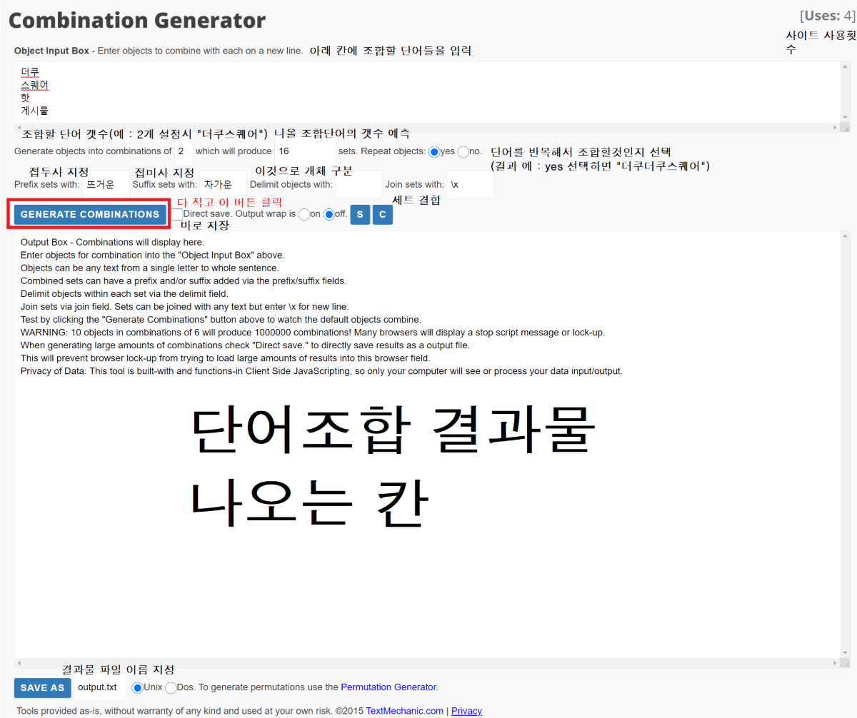 조합단어갯수 많으면 인터넷으로 경고뜨면서 안될수있어서