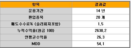 시가총액 상관 없이 PER과 PBR 동일가중으로 순위 매겼을 때, 14년간의 백테스트 결과이다.