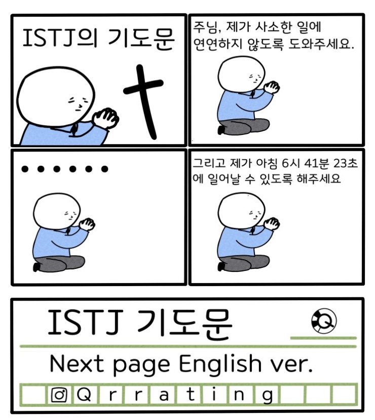 [만화] MBTI 유형별 기도문 1. ISTP / ISFP / INFP / INTPISTP 기도문 주님, 제가 다른 사람들의 감정을 배려하도록 도와주세요. 비록 그들 대부분이 신경과민증...