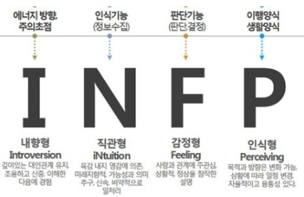INFP 유형은 내향적이고 직관적이며 감정적이고 인식적이다.