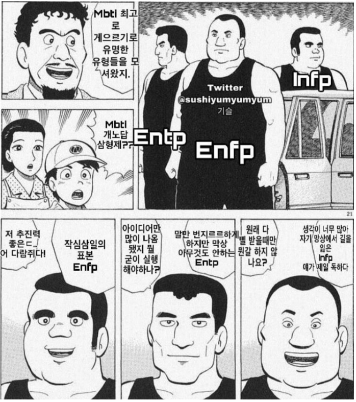MBTI 게으름 삼형제, 재미로 봐주세요.