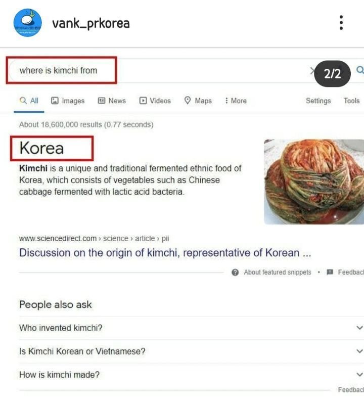 구글 영어 사이트에서 "kimchi'를 검색하면 표시되던