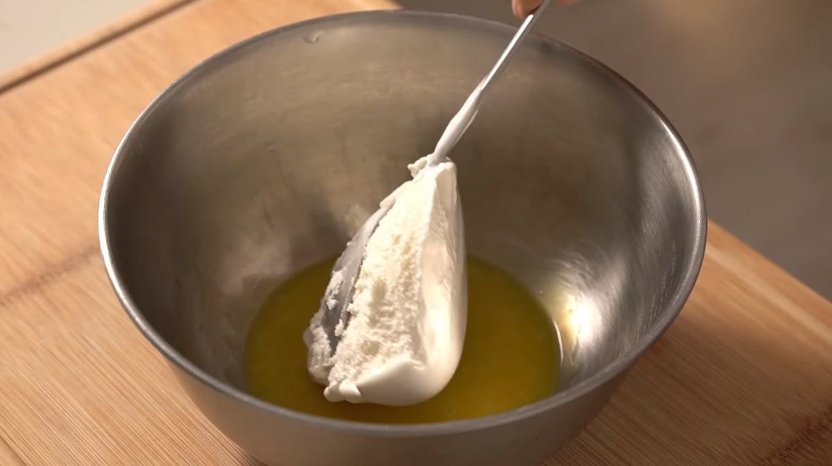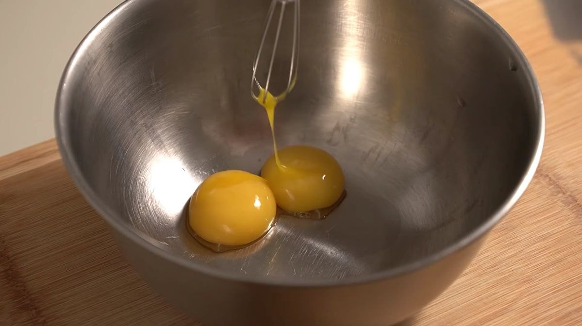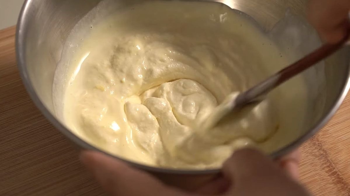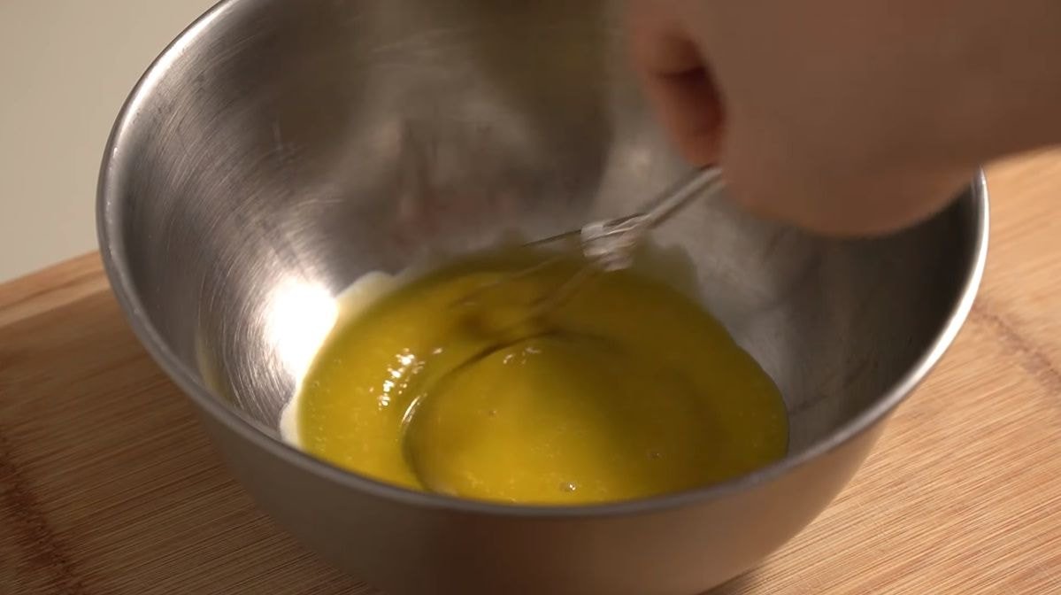 넣은 아이스크림과 풀어진 노른자를 저어서 뒤섞는다. 식용유처럼 부드럽게 흘러내리는 상태가 되면 다 섞인 것.