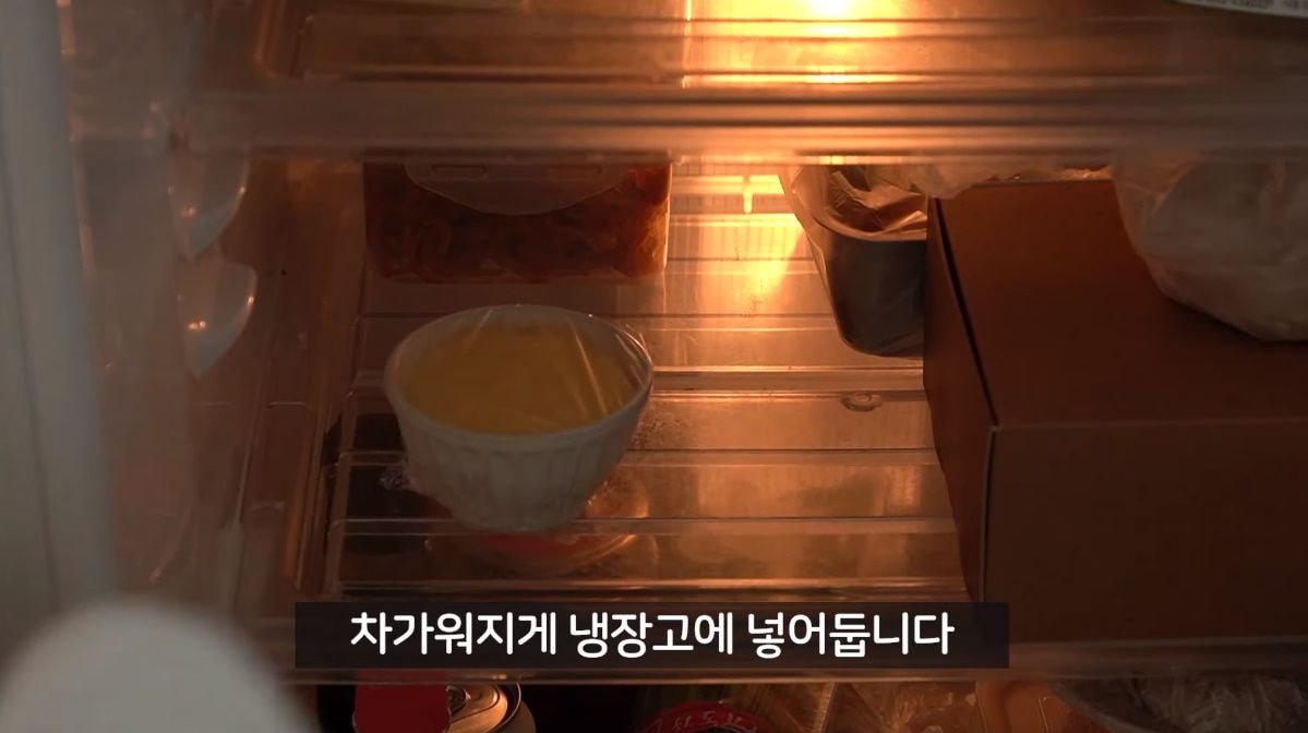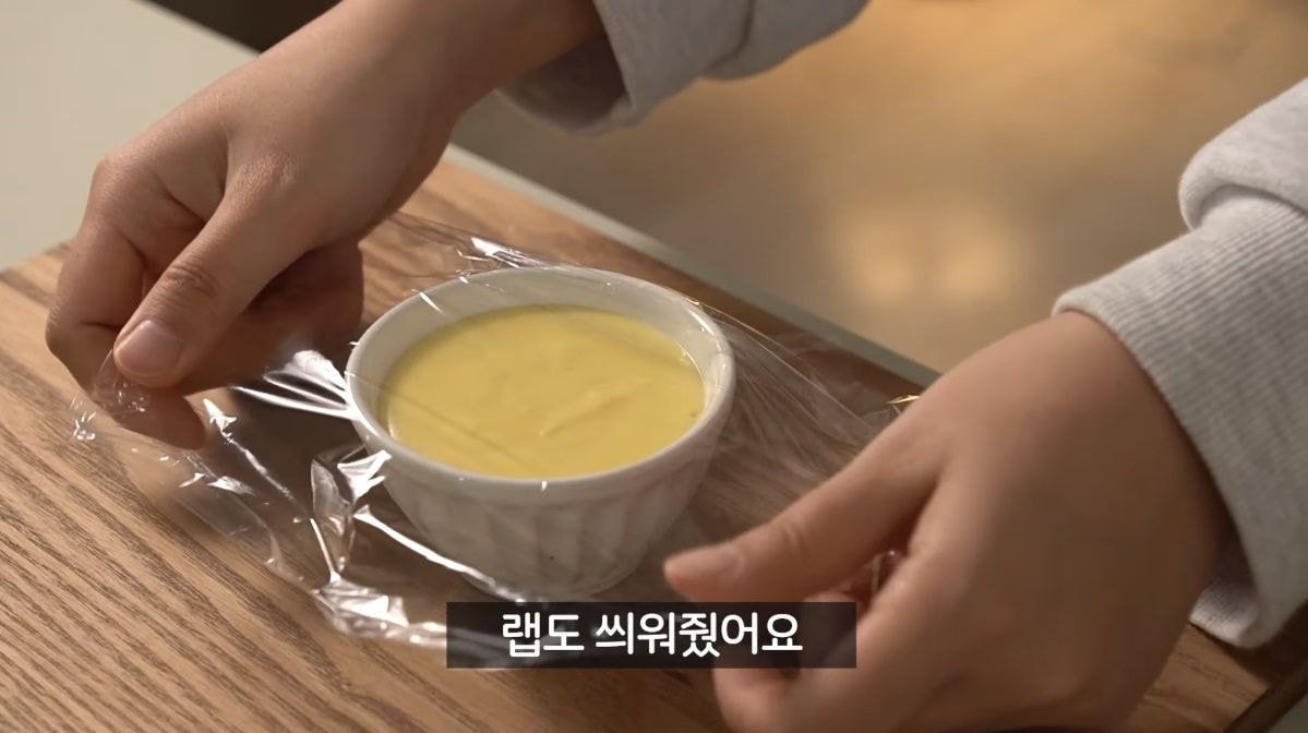 라메킨에 랩을 씌운 후 냉장고에 넣어 하룻동안 차게 해준다.