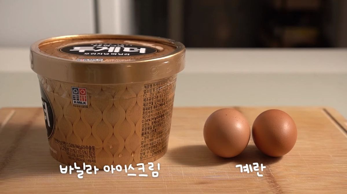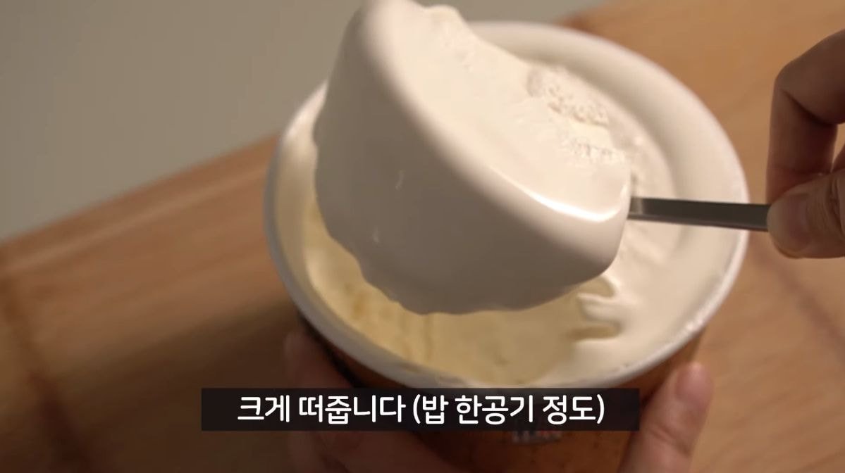 풀어준 노른자에 밥 한 공기쯤 되는 바닐라향 아이스크림을 넣는다.