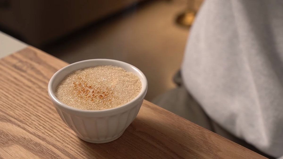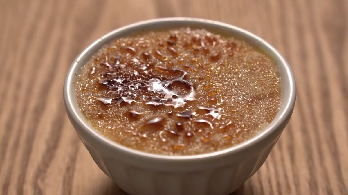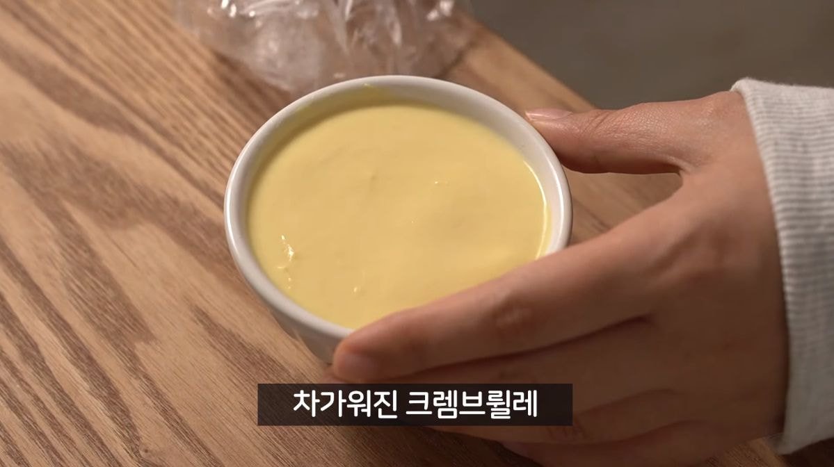 녹힌 설탕이 식어서 딱딱해질 때까지 기다리면 크렘브륄레 완성.