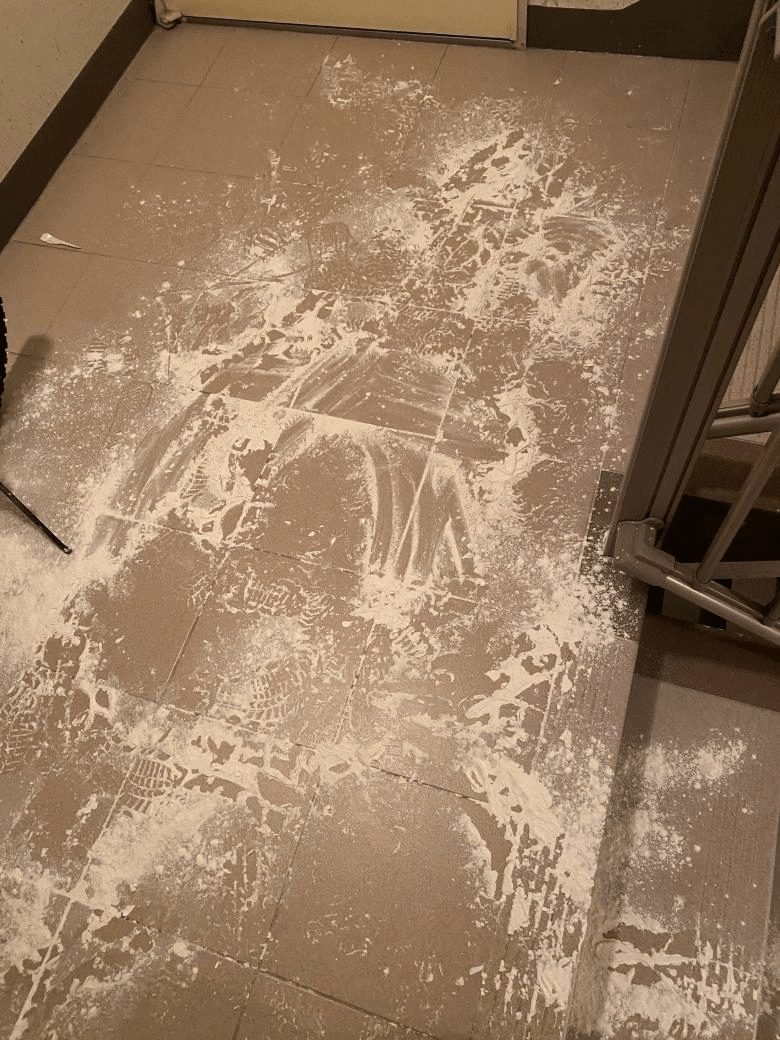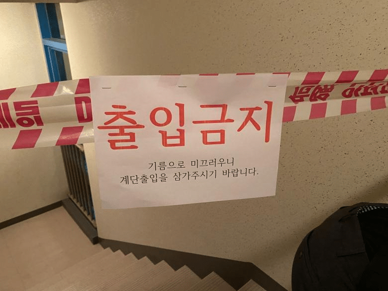 주민 한 분은 식용유 밟고 넘어지셨네요.