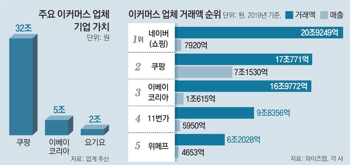 연초부터 국내 이커머스 업계에 대형 매물이 쏟아지고 있다. 미국 이베이가 지난달 G마켓, 옥션, G9 등 서비스를 보유한 이커머스 기업 이베이코리아의 매각을 발표했고 대주주의 엑시트(exit·투자 회수) 수요가 있는 티몬도 잠재적 매물로 거론되고 있다. ‘배달의민족’에 이은 2위 배달앱 ‘요기요’(딜리버리히어로코리아)도 경쟁당국에 의해 강제로 인수합병(M&A) 시장에 나왔다. 이들의 몸값만 10조 원에 이른다. 유통업계에서는 “급격하게 성장 중인 국내 이커머스 시장의 재편이 이뤄지고 있다는 신호”라고 분석한다. 하지만 성장세만큼이나 치열한 출혈경쟁 때문에 수익을 보장하기 어려워진 만큼 매수자를 찾기가 쉽지 않을 것이란 전망이 나온다.