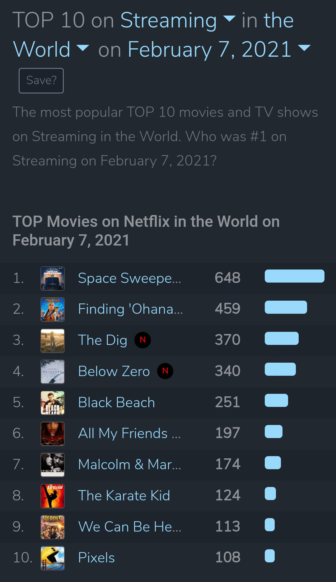 2/6일 월드와이드 1위