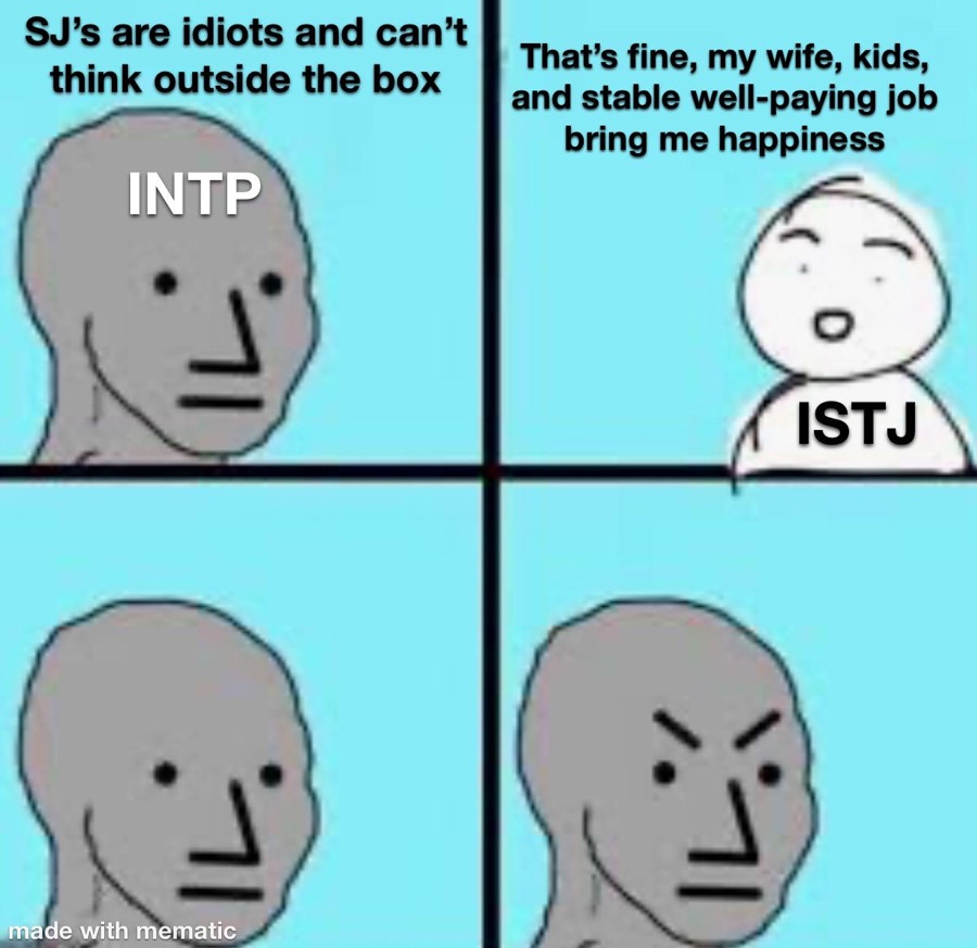 INTP: SJ 는 멍청하고 창의적이지가 못해
