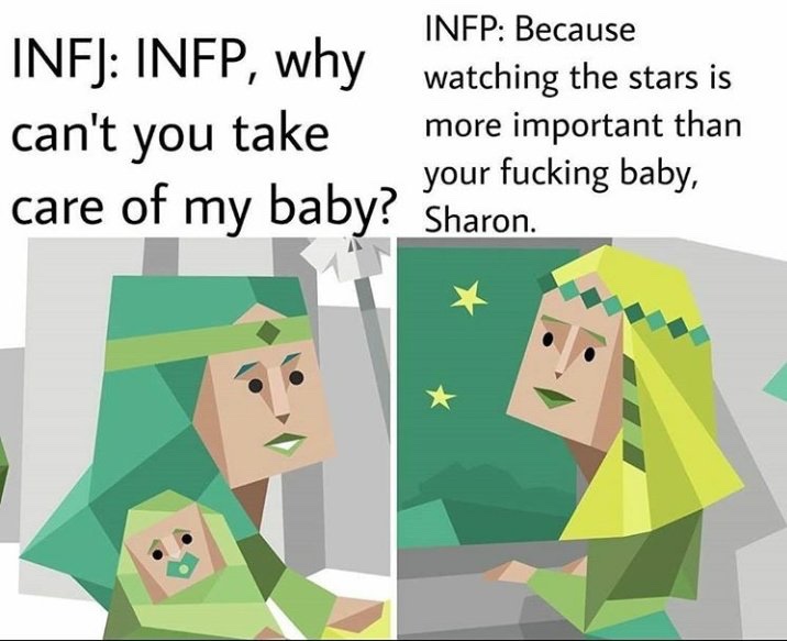 INFP: 왜냐하면 별을 보는 게 그 망할 애기보다 더 중요하기 때문이야 샤론.