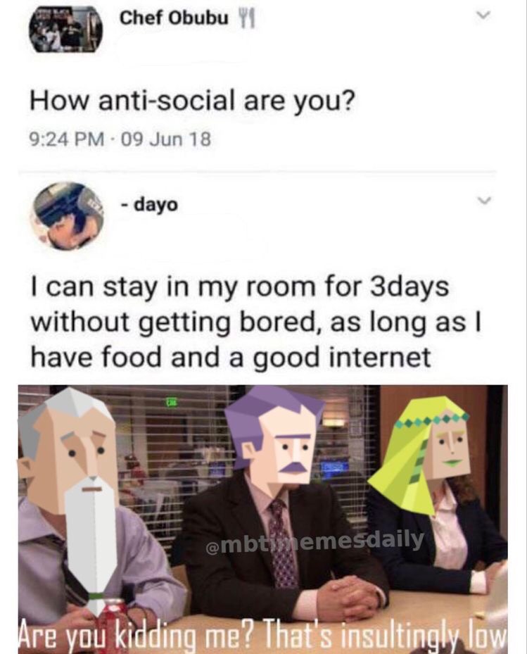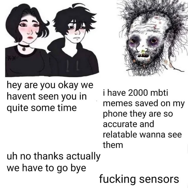 N: 나는 2000개의 엠비티아이 밈을 휴대폰에 저장했어. 엄청 정확하고 공감할 수 있는 밈들이야. 너도 한 번 볼래?