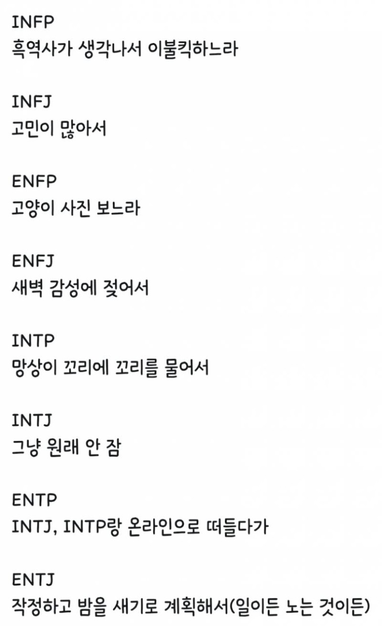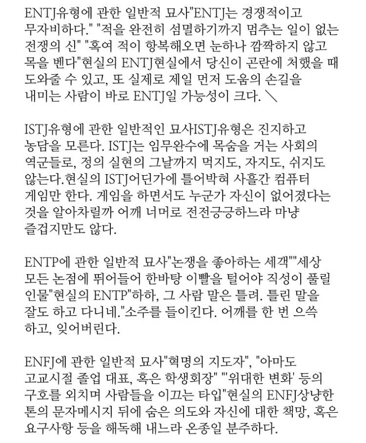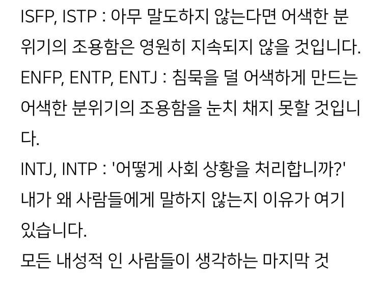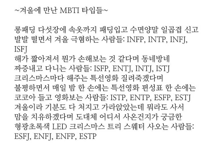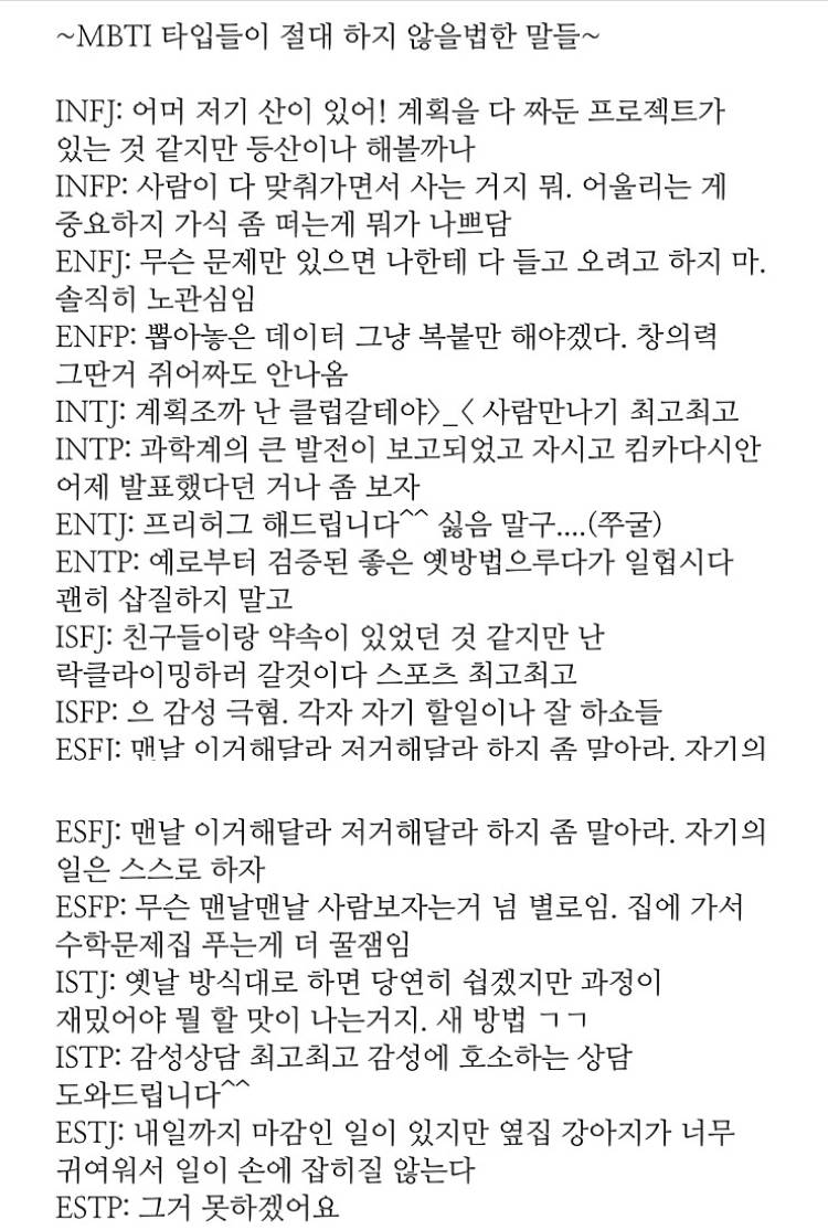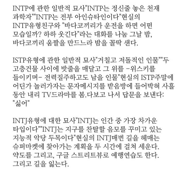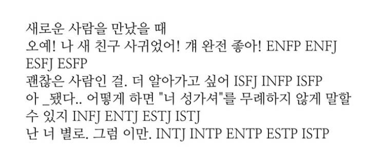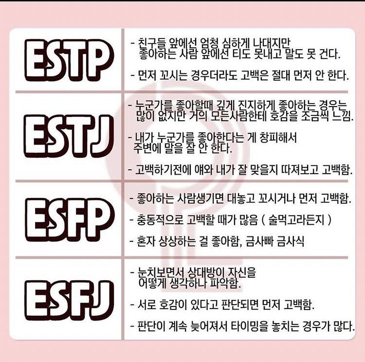| MBTI 유형별 상황별 특징 2편 (0) | 2021.02.12 |