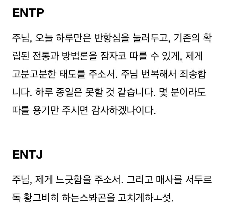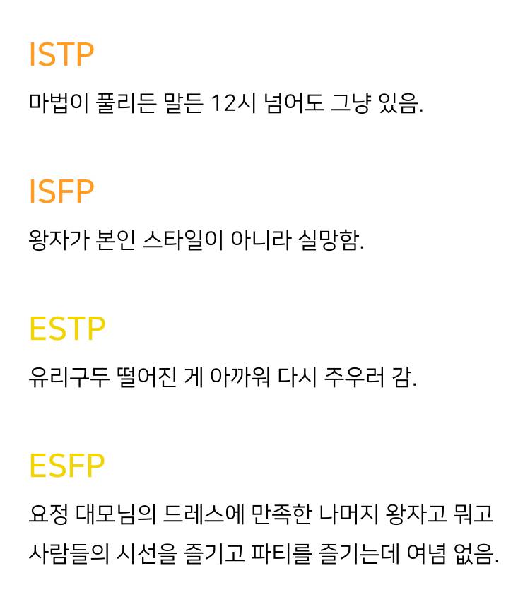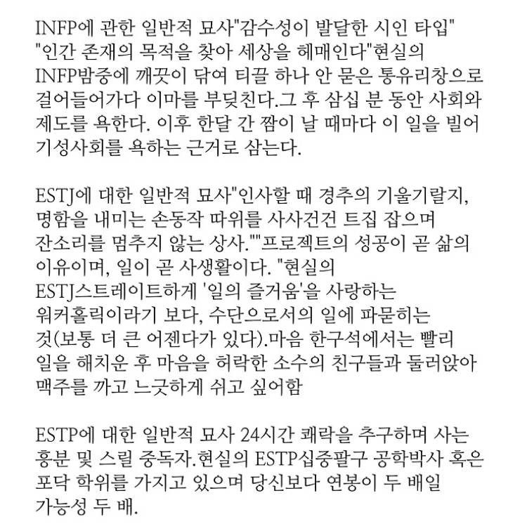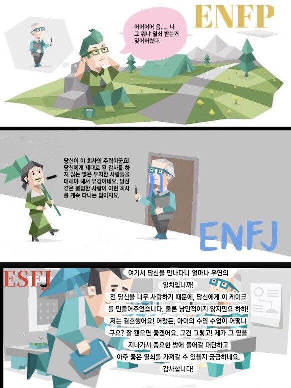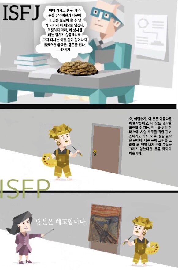 ENFP : 사내 규정사항(안 읽고 덜렁대다 ESTJ 상사한테 깨짐)