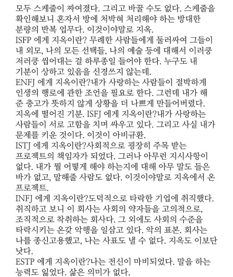 ENFP : 사내 규정사항(안 읽고 덜렁대다 ESTJ 상사한테 깨짐)